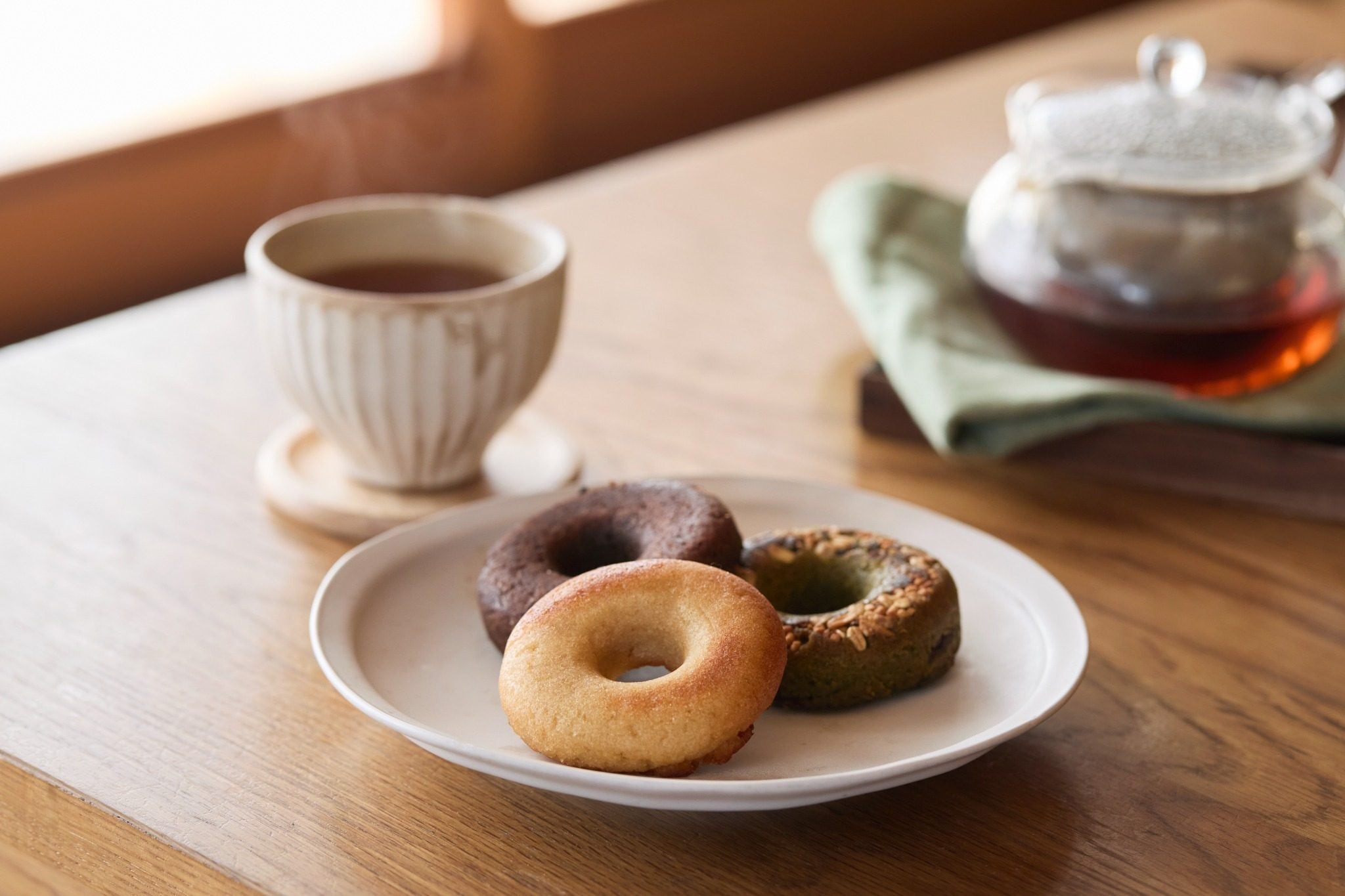 アレルギーのある方や、ヴィーガンの方、なんでも食べられる方でも、みんなで同じ物を楽しく美味しくお召し上がりいただけます♪ ドーナツの中には水戸農業高校で作られたきな粉を練り込んで優しい味わいに。食感はしっとり柔らかなドーナツです。
